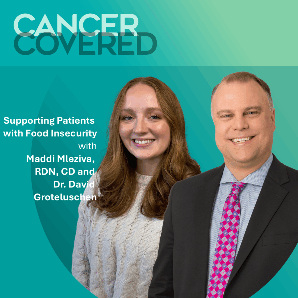 Oncologist Dr. David Groteluschen and Clinical Dietician Maddi Mleziva discuss the alarming rate of food insecurity among cancer patients, which significantly increases calorie needs and the risk of complications like cachexia during treatment, and the collaborative strategies used by the care team to ensure access to vital nutrition and maximize caloric intake over nutritional perfection.